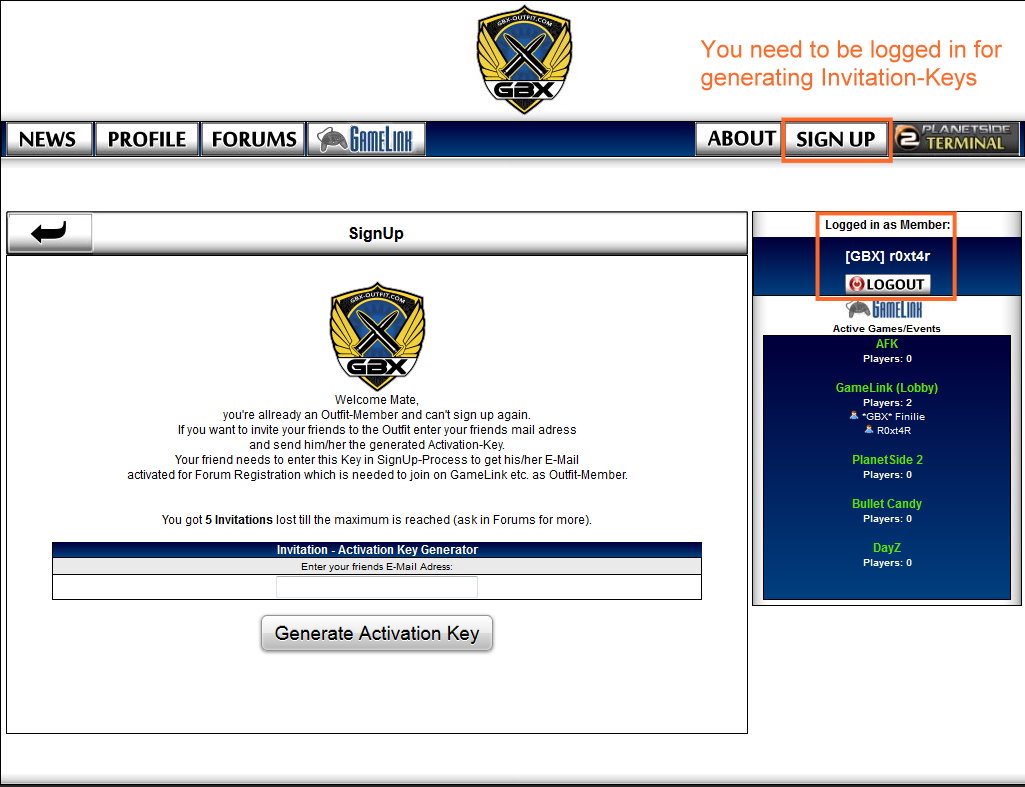 So we thougt it would be a great option esp. regarding the GameLink feature to invite friends to the outfit. This is possible now.